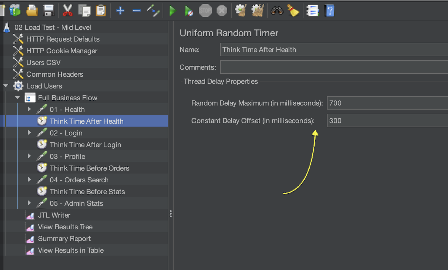 לכן ב-02_load נוספו זמני המתנה קצרים בין שלבים שונים בזרימה. העיכובים האלה נקראים Think Time.